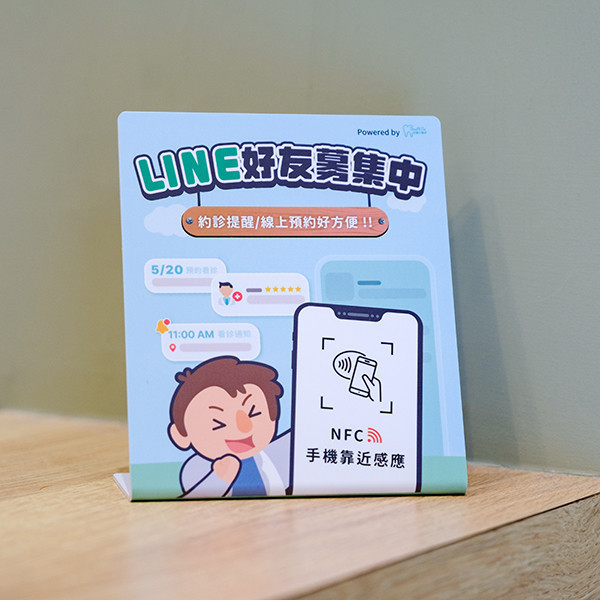 透過NFC技術,客戶只需輕輕一碰即可加入診所LINE好友,方便診所進行訊息推送與客戶管理。